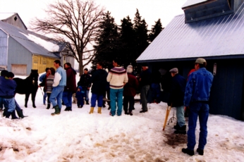 Our maple syrup business was inspired by Bernard and Edith Marcoux who became our immediate friends when they moved into the Shelburne area. Bernard, from a many generation French Canadian family, could not resist setting up a small evaporator when he moved to his farm in Melancthon township from Quebec. Both Nancy and I were drawn into the act and it was not long before we too had tapped our first trees.