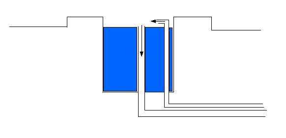 The gravity water system is the most trouble free type of alternate watering facility that we have. The only problems we have are at the intake where river debris sometimes blocks the screen and a few broken connections at the lower end where the 4" tile is reduced to a 2" plastic pipe. To prevent the cattle from inadvertantly placing their feet in the tank and damaging the intake and outflow pipes, we have welded a heavy support sreen that sits a few inches below the water line. This unit is checked daily when the cattle are fed. There has never been a problem with freezing but the snow does form a cover on stormy days that has to be shovelled. At the end of the winter the build up of compacted snow around the tank forces the cows to go down on their knees to reach the water, the result of not providing a larger head of water when we first constructed the system.