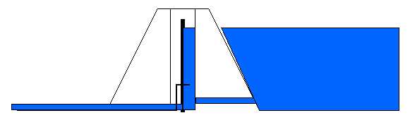 A second ram pump was installed at our pasture farm using a Healthy Waters grant from the Notawassauga Valley Conservation Authority. As with the first pump we had designed the system using a length of pipe run up a small outflow stream from a farm pond. Unfortunately this setup did not provide enough volume of water for the 30 cow calf pairs that were being watered. Fortunately, the pond was designed with a bottom outlet as shown below.