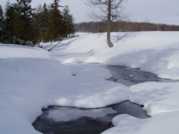 Not wanting to be swept through the culvert if the 4 x 4 cedar posts that formed the dam broke while I was drilling the 2" hole for the intake pipe, I waited until late in the season when the water level in the pond had receeded to a more safe level. As it was, I still had myself secured by a rope for safety's sake. There was more than enough flow of water once this system was put into place with the added advantage of the overflow from the water tank returning to the pond. The pond, which once had direct access by the cattle, has now been fenced and planted with a mix of maple, walnut, spruce, ash, and cedar again through a Healthy waters grant. This pond buffer not only provides a better water quality, free of fecal contaminants, for the cattle but also creates a protected area for duck nesting and enhances the natural beauty of the pond.